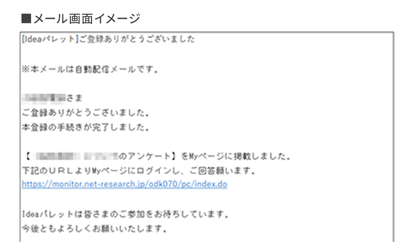 登録いただいたメールアドレスへ本会員登録完了メールを送ります。
