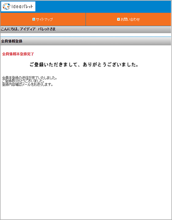 E-Mail確認後、本登録手続き -