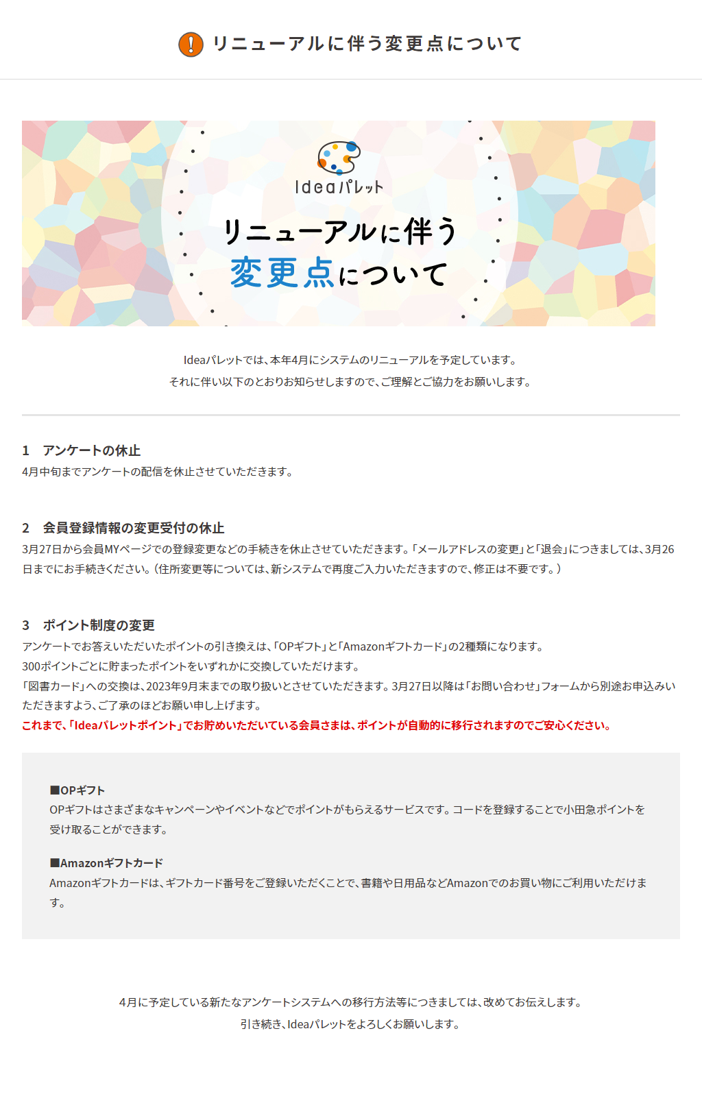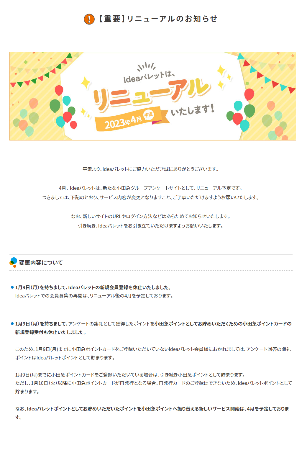 リニューアルに伴う変更点について