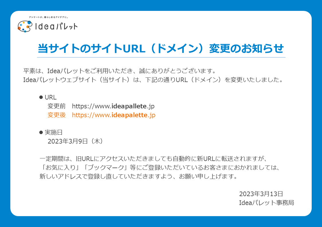 当サイトのサイトURL(ドメイン)変更のお知らせ